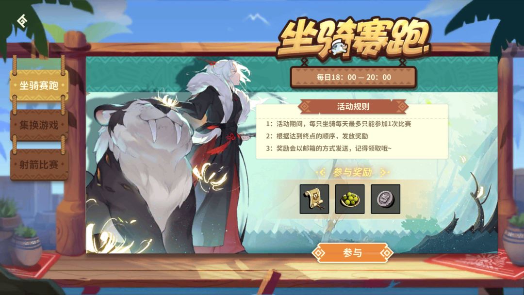 参与时仅可选择一个坐骑进行比赛,且当日使用过的坐骑不可进行2次选择。