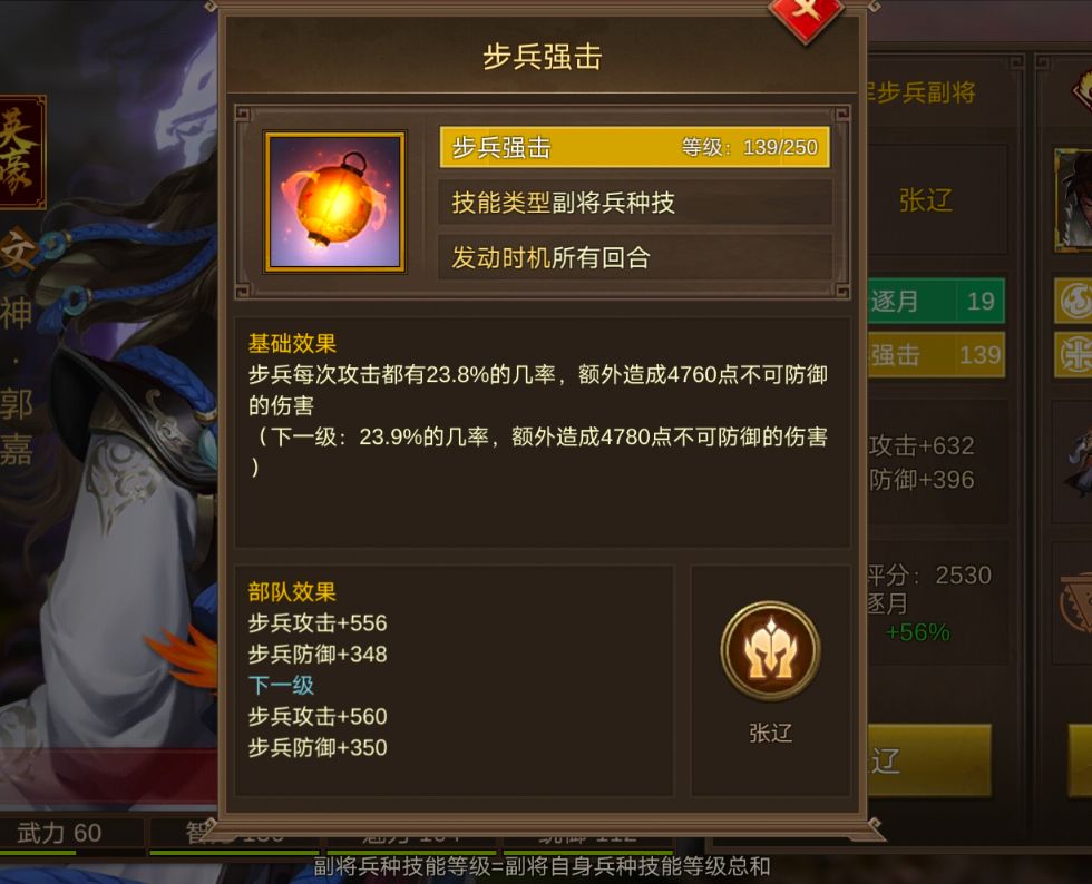 · 影响2:副将兵种技能等级对部队的加成