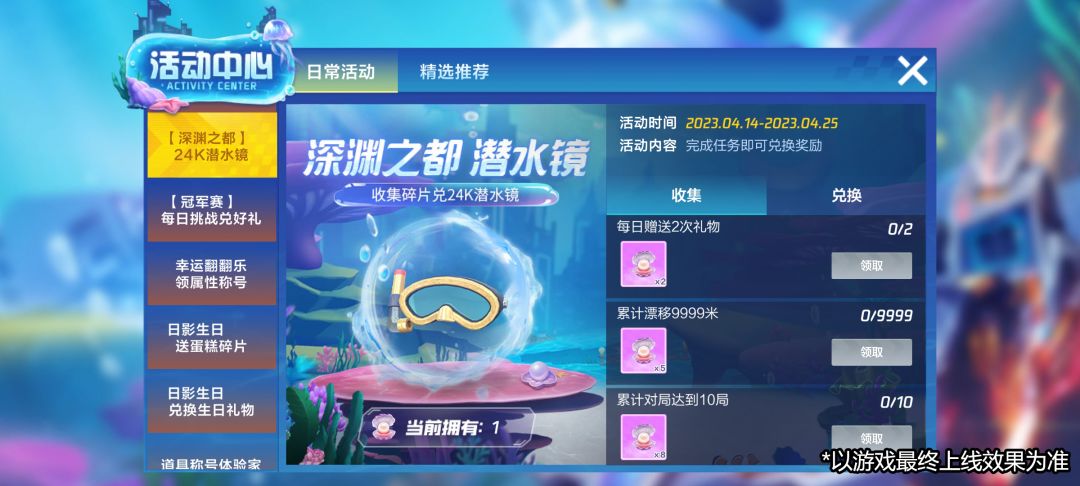 深渊之都24K潜水镜 任务免费领