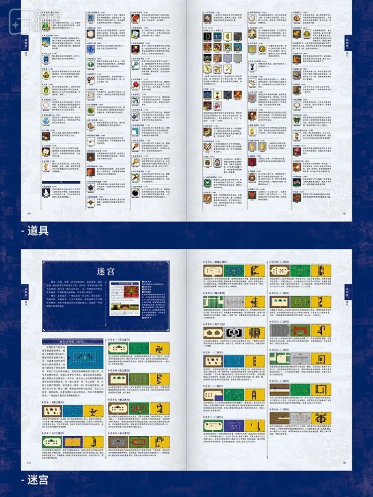 ——记录了游戏里的城镇与村庄、道具、迷宫,还有敌人和魔物。 这部分囊括了历代游戏中玩家所遇见的所有宝物和挑战,用紧凑和细密的竖列讲过去的冒险铺陈开来。