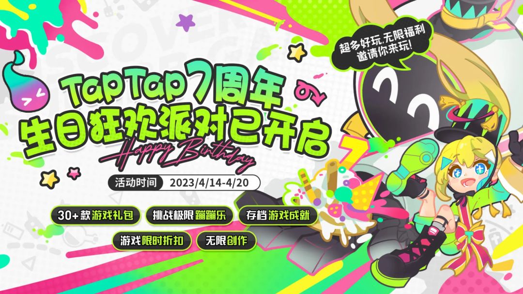 TapTap迎来7周年生日啦!4月14日-20日,#TapTap周年庆无限福利# 正式开启~超多丰富庆生活动,陪你一周狂欢!