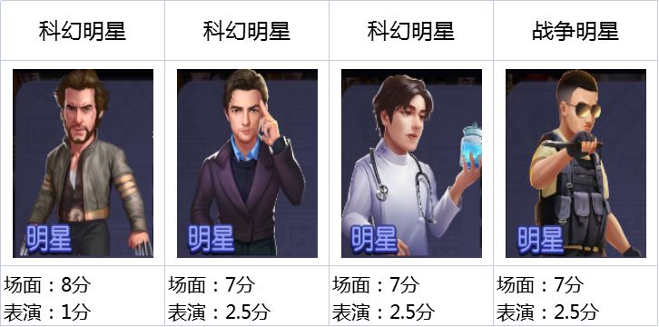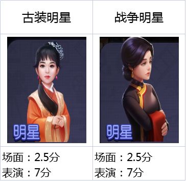 2.第二梯队的艺人相对比较第一梯队的表演基础属性可能会差了一些,但是场面基础属性这块补强了一些