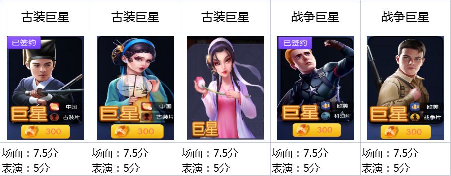 2.第二梯队的艺人相对比较第一梯队的场面基础属性可能会差了一些,但是表演基础属性这块补强了一些