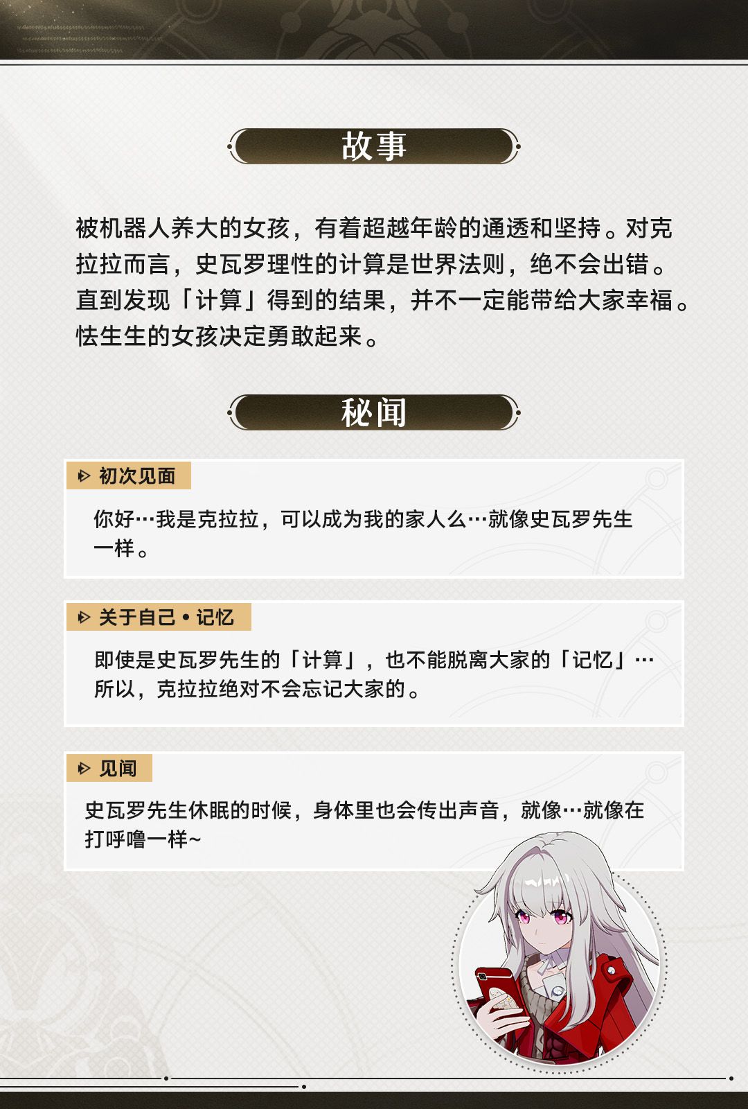 开拓者好呀,今天为大家带来的是「克拉拉」的角色前瞻。