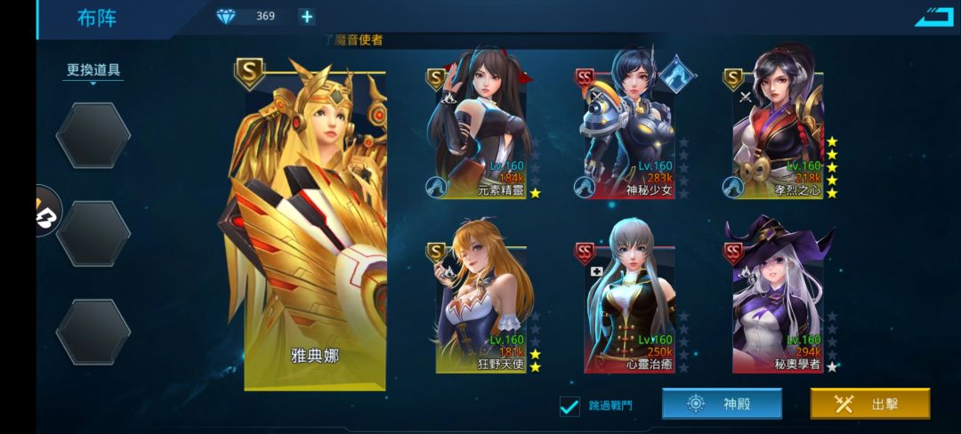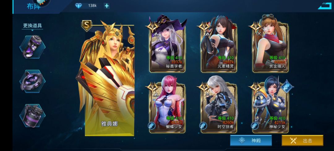 但是前期开荒的时候,如果也这么搞的话,前排既没有高额精灵盾,也没有好装备,实际体验大大不如。于是我进行了些微的改造,前排加一个龙女,既是一个软控,又是一个盾。