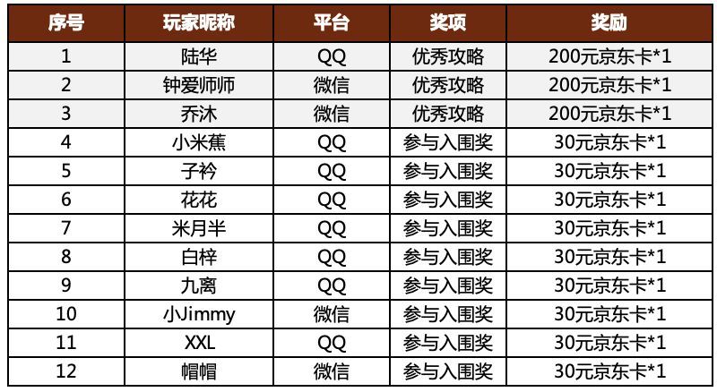 以上就是第二十六攻略征集的全部获奖选手啦!获奖的杀友们请注意小师妹账号的添加申请消息,小师妹会在7个工作日内添加申请成为你的好友,并会亲自联系你进行派送奖励哒,千万不要错过噢~