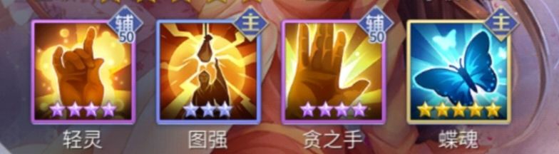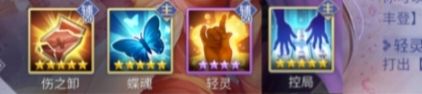 蝶魂控局轻灵伤卸:这款配置推图或者宝具辅助非常好用,控局不怕偷牌,蝶魂不怕群,伤卸不怕虎,轻灵还可以回合外摸牌。较全面的配置。