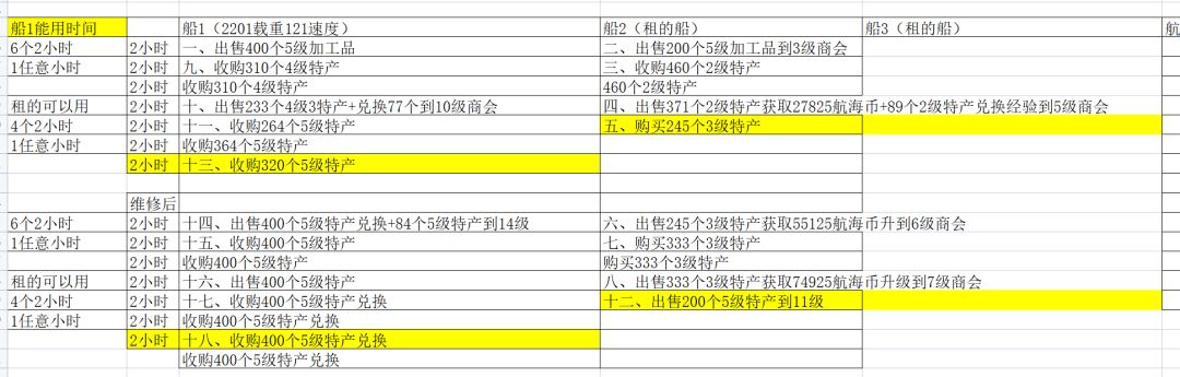 2、租的船600耐久,2小时消耗120耐久,也就是可以跑4个2小时,最后120耐久用来收购!