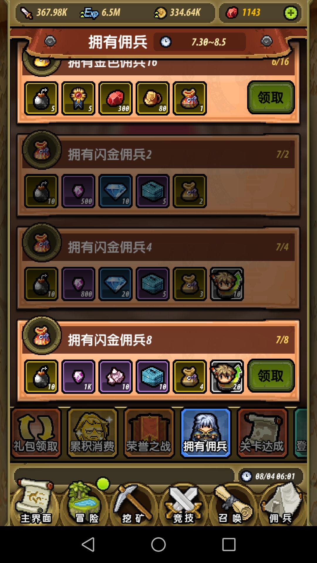 有了8个闪金佣兵,但是活动显示还是7/8。