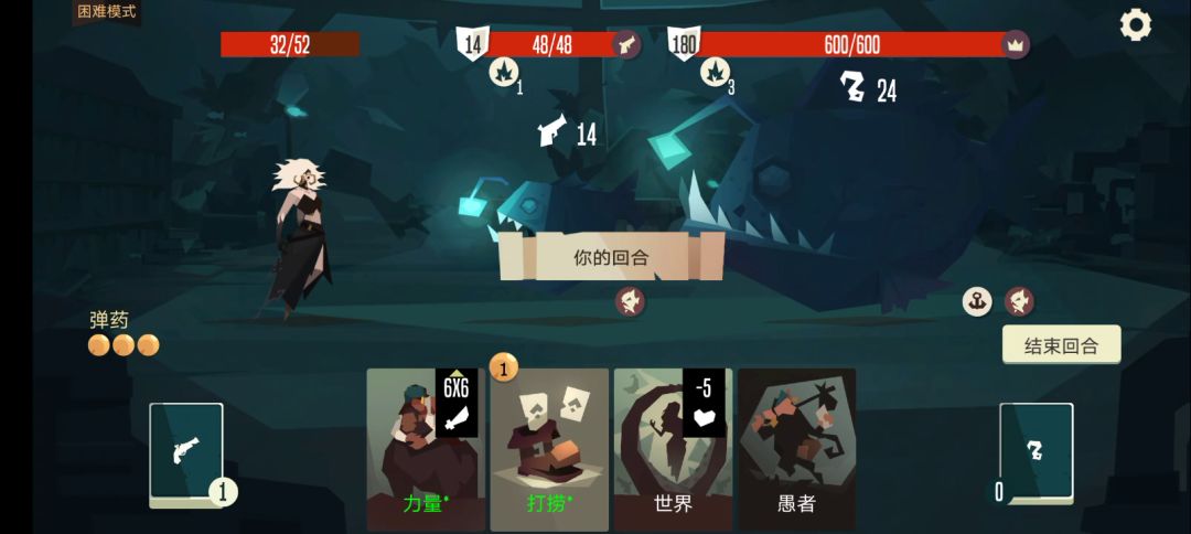 狼女对重伤目标暴击,加上困难模式的增伤和初始自带的愤怒,伤害非常高,提前找张状态卡,最好是免疫,或者有皮纳塔,不然基本打不过。