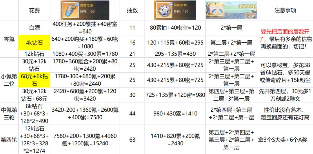 第四轮的话,多了700元左右,但是可以多3个S大奖,加上第五层多出来的奖励,还有第四轮的大奖,整体性价比是要比第三轮高出一大截的。这个活动,要么就是微小中氪,第一二轮收手,要么就是搞完第四轮。