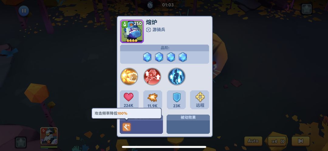 2.有些属性,详情界面里没有,可以到战斗场景中查看;以拉法特的“麻痹”为例,试玩该英雄,点击敌方目标,会弹出以下界面: