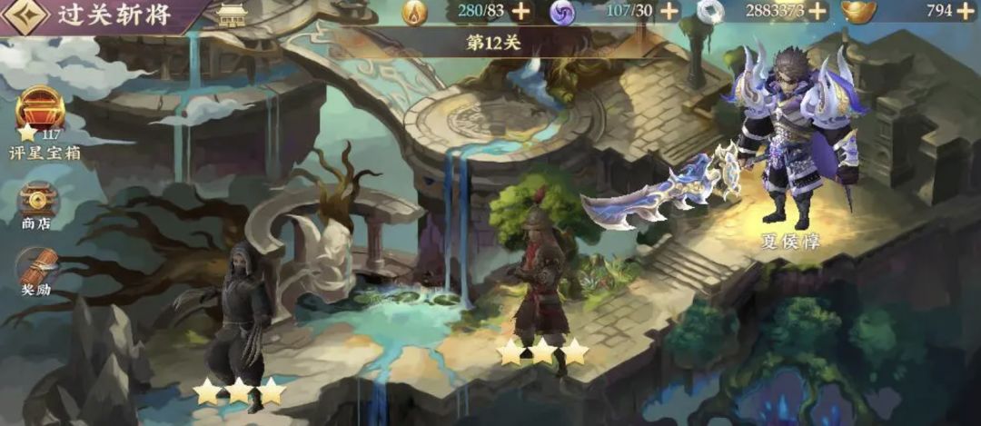 当然,即便大家不适用合体技,在一轮又一轮的技能攻势当中,夏侯惇也会逐渐被击溃。玩家们在成功的完成了挑战之后,就可以得到珍贵的星级奖励了,后期还会在过关斩将当中得到更多高级属性的选择权。
