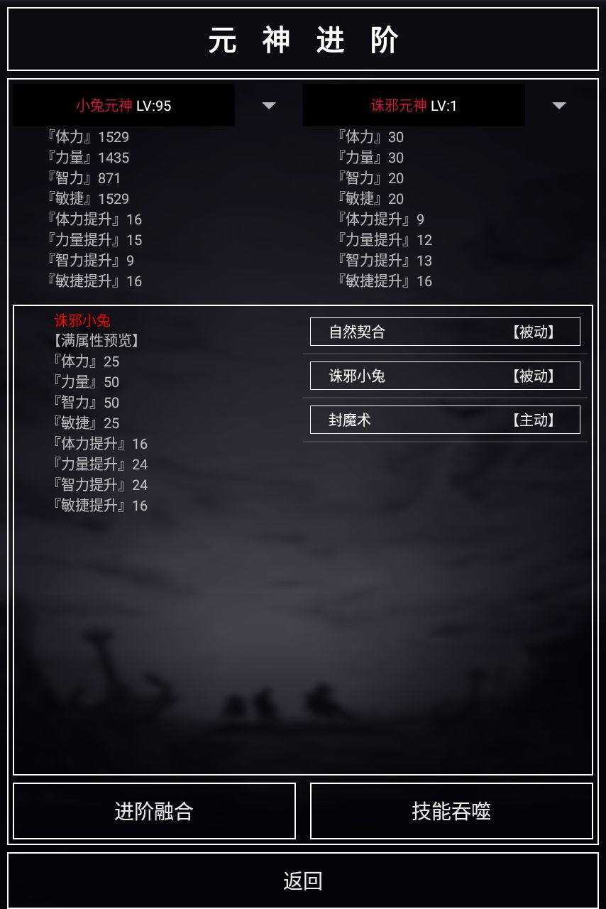 礼包码老生常谈的就不多赘述,领完以后商店里用 2023福气到 换 小兔元神 , 小兔元神 再和同样礼包码送的 诛邪元神 进行融合进阶