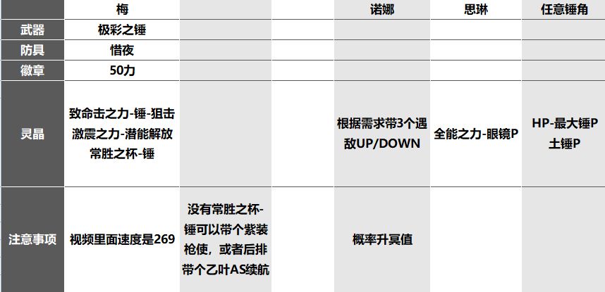 锤:依法AS的“专属”武器,堆精神必备,自带天冥精神UP,开AF的时候还能蹭一点全属性耐性DOWN(概率),推荐做1把+10(15-17把左右结束)