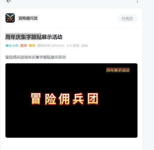 3.集齐“冒险佣兵团”周年庆集字跟贴。