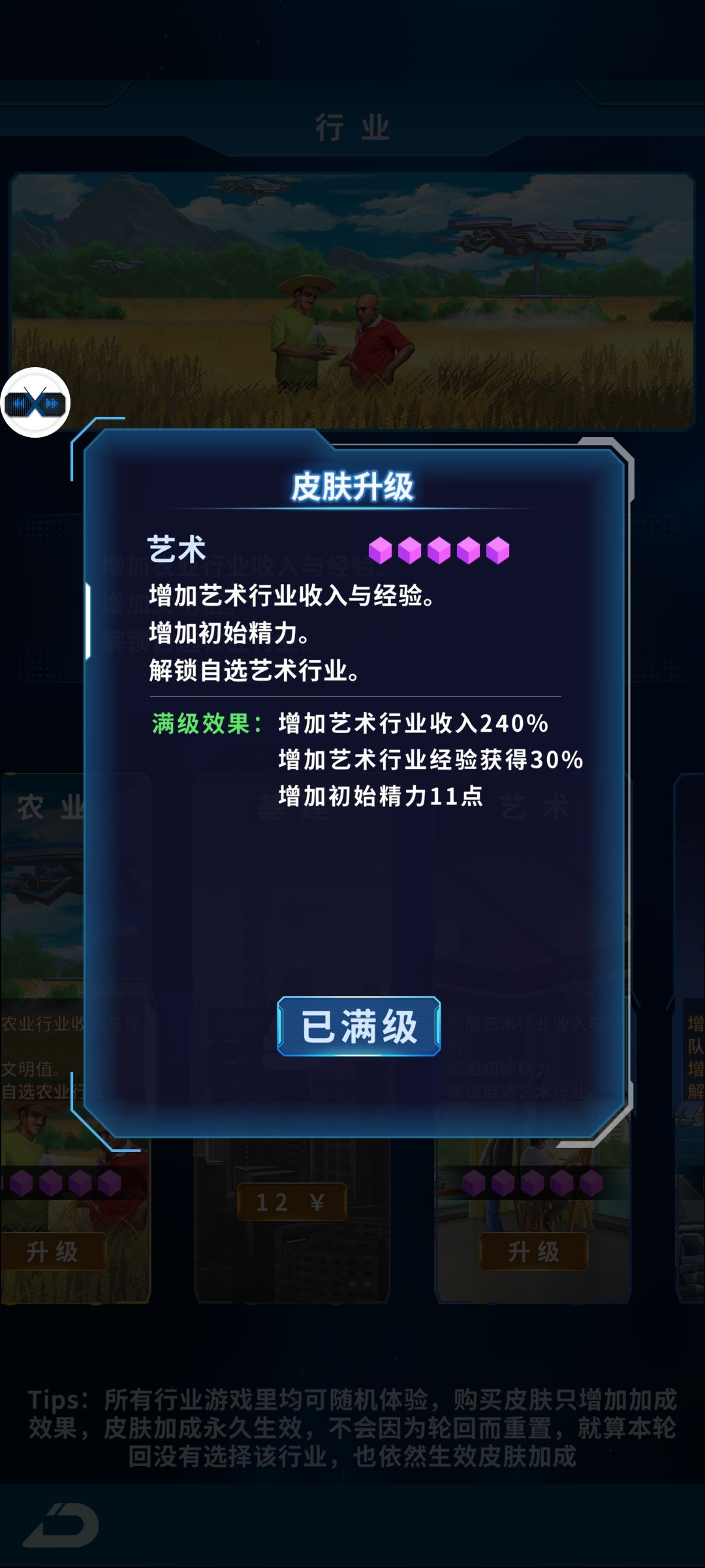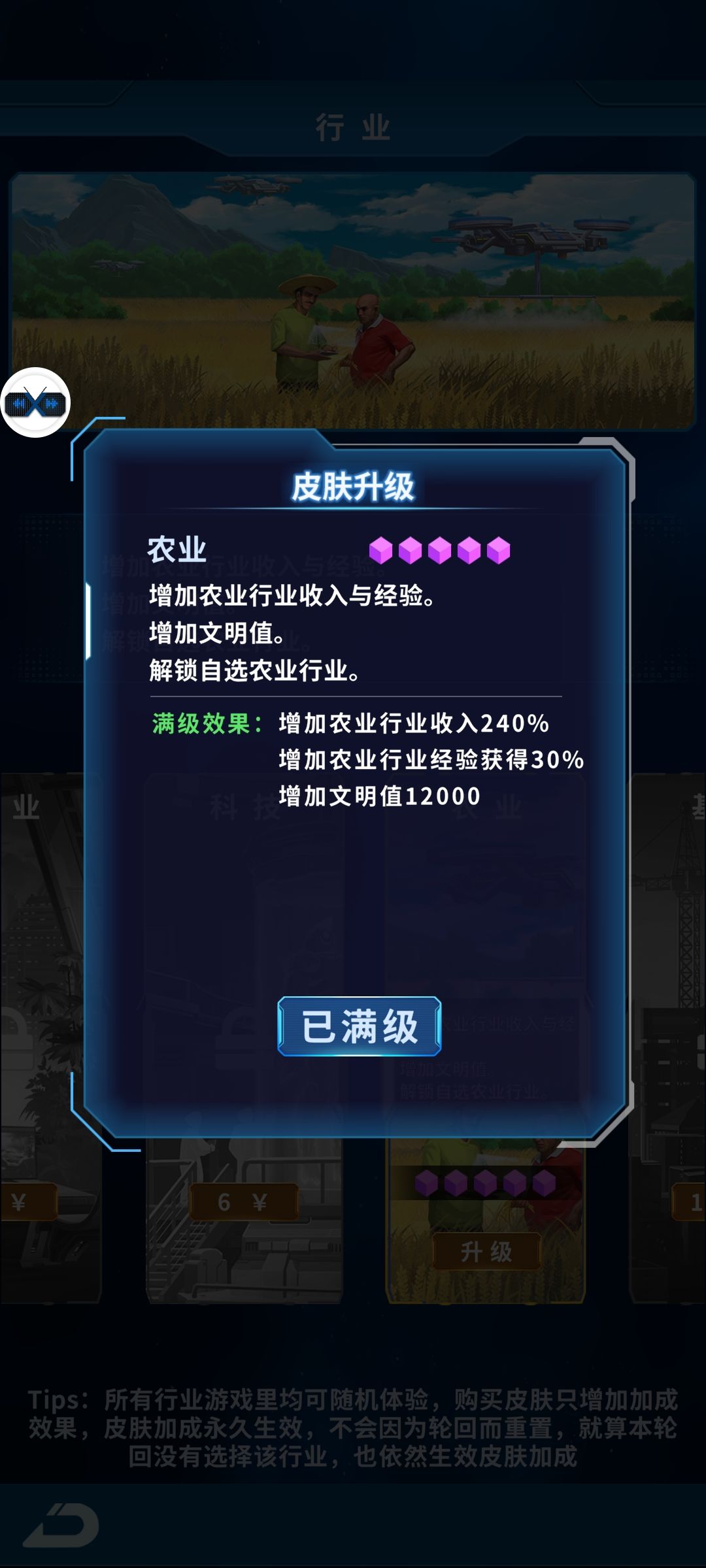 2.工作:从餐饮→商业→科技→农业从头到尾全点亮.最后停农神