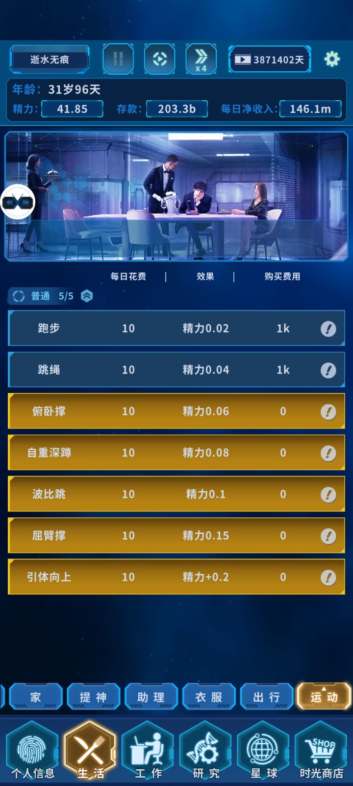 4-6:轮回心里有大概念玩法.知道了食物+精力最多.住.衣.行次之 生活里的运动=白漂者福利(图三.全只要1k)知道前几个工作职业商业最赚钱: