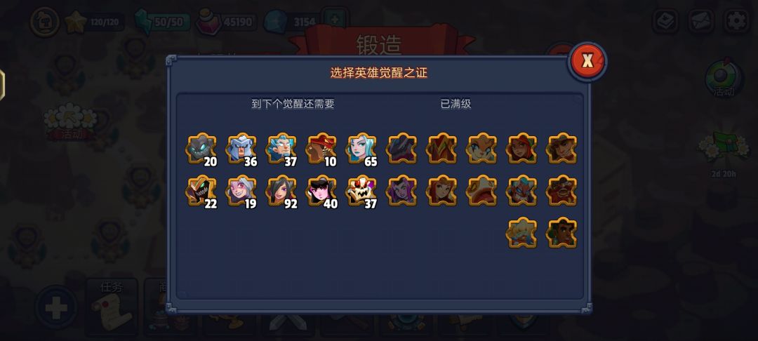 还有两个英雄没有买,12个满觉英雄,其他都是四阶、五阶,慢慢一个一个升起来吧!