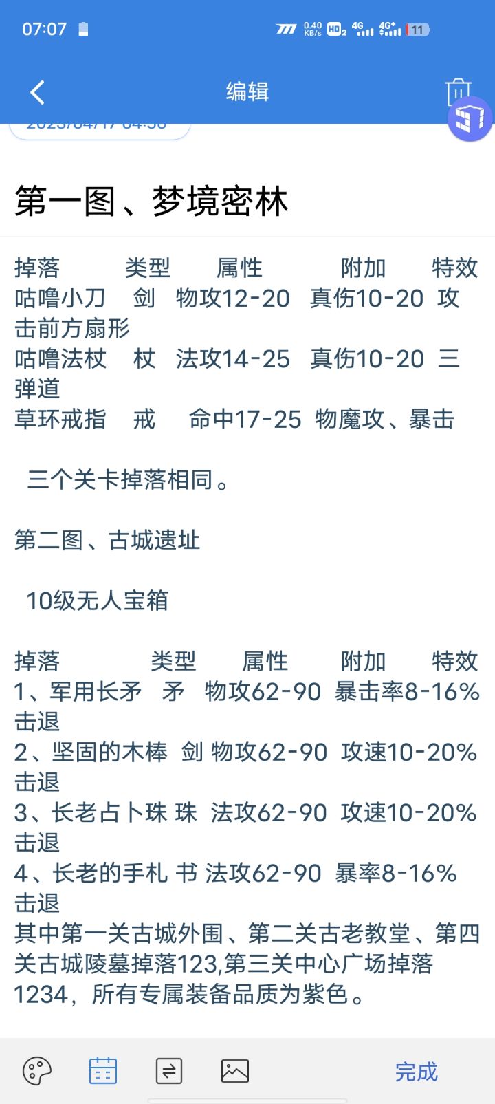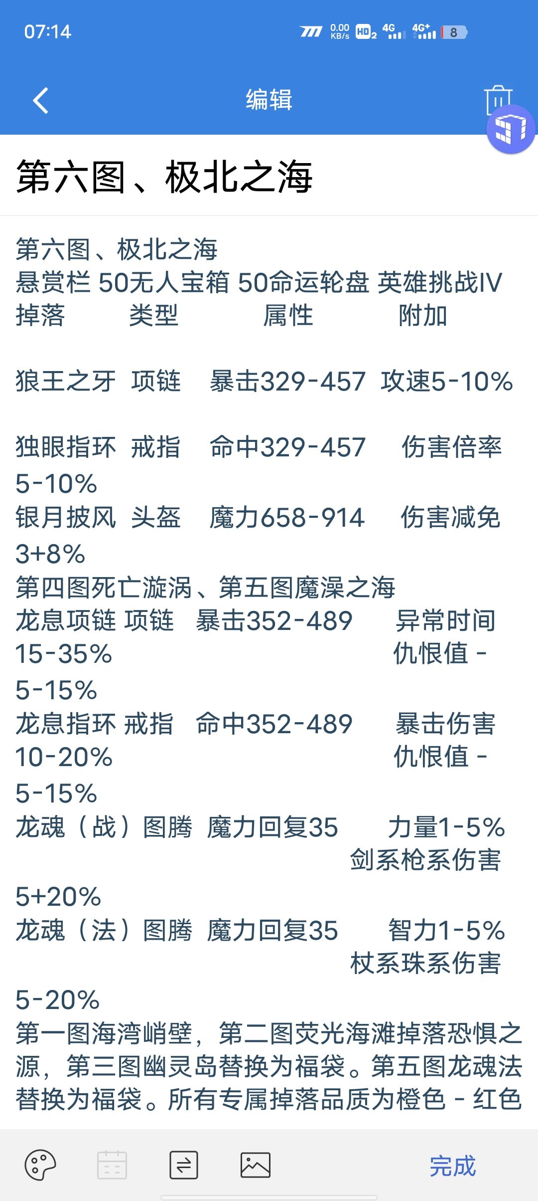 一共七张大地图的专属掉落,第一张图片包含游戏里第一第二张地图,需要的朋友一一对应即可。