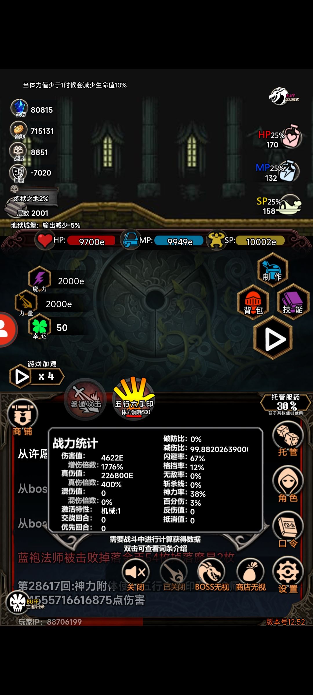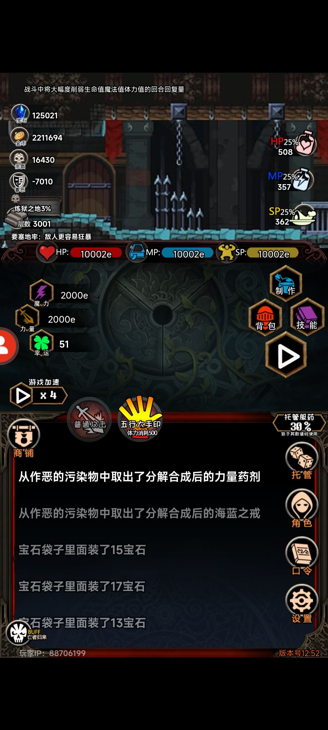 但同样的,为了能打到4W层,需要引入一个新的口令,同时舍弃掉两个旧口令,以及舍弃一件刷魔晶装备。
