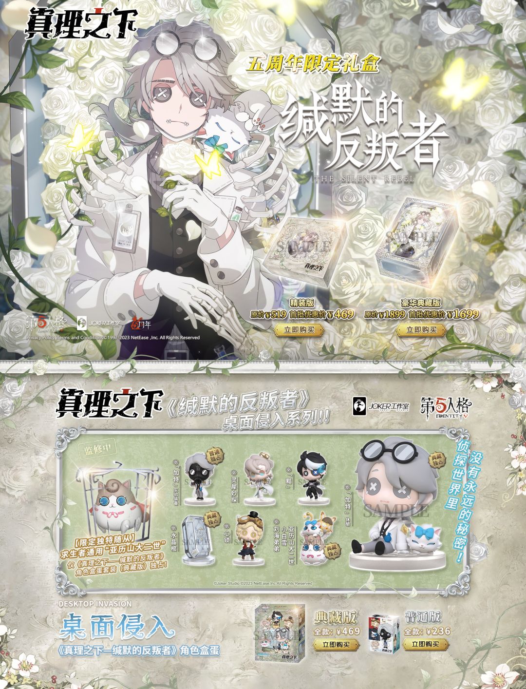 五周年限定礼盒《真理之下——缄默的反叛者》,桌面侵入系列《真理之下——缄默的反叛者》角色盒蛋将于今天10:30正式开启预订!