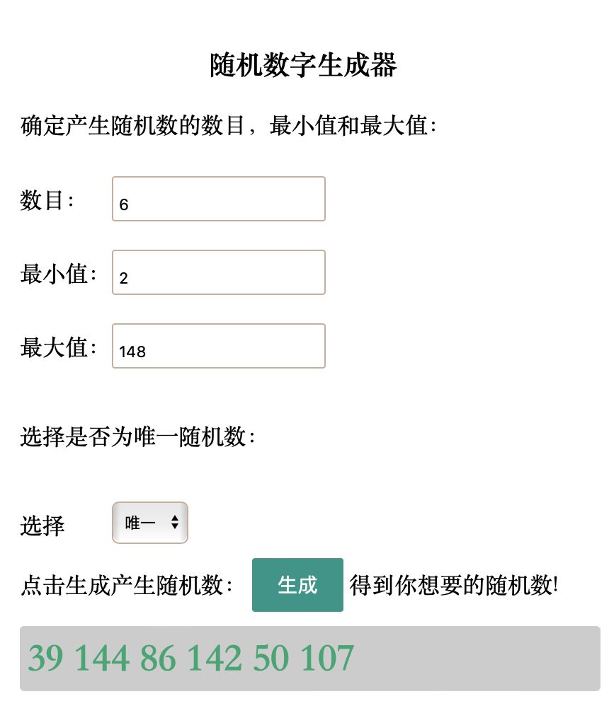 随机数生成器随机抽取了六名幸运儿,结果如下