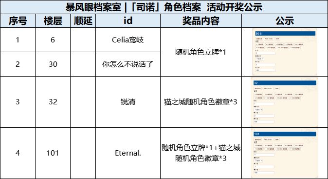 ▷ 参与楼层超过100,额外抽取一份“随机角色立牌*1+猫之城随机角色徽章*3”。