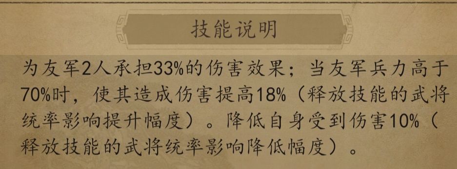 一方面,杜伏威的分担伤害让他很难活到五回合以后;另一方面,杜伏威的加伤效果也只有在队友兵力高于70%的时候才能生效。