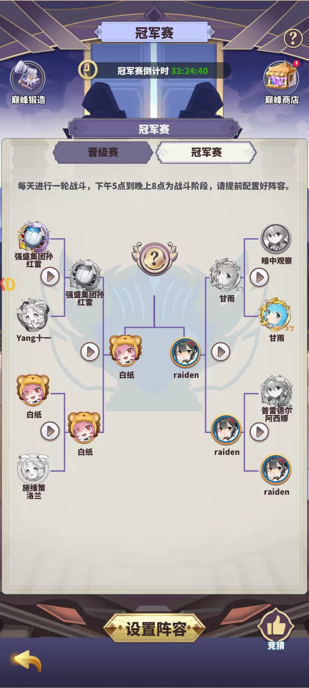 而巅峰的意义,其实首先在于你能形成一套自洽的体系,涉及各个方面,足够全面,以支撑起每一轮不同的对手的挑战。(你不会每天都调阵容吧?)