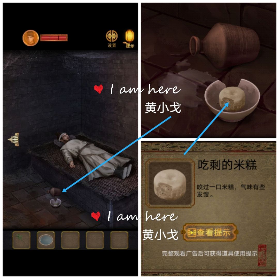 1.(牢房内-牢房)点击地上的碗,获得【吃剩的米糕】
