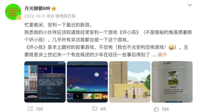 《烟火》作者月光蟑螂也很喜欢《坏小孩》
