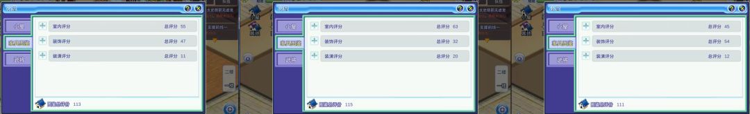 比如,1号屋一楼,摆放了家具,分数达标。