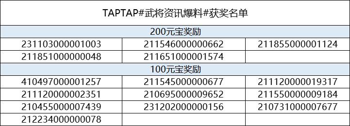 恭喜以下主公获得本次奖励,奖励将在7个工作日发布到对应游戏ID,请注意查收