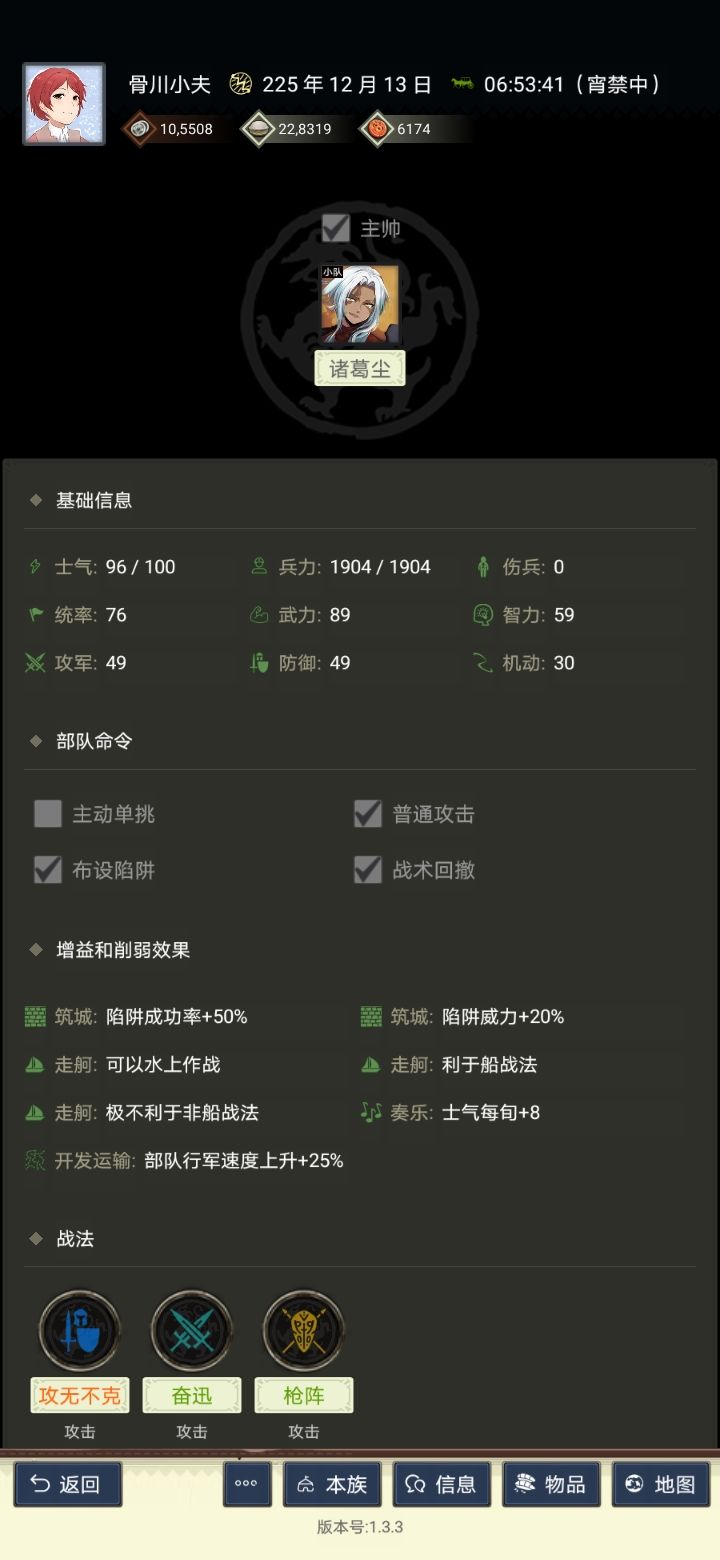 4.打高级地之前,可以先把战争的增加1000兵力,以及20最大士气打开,出征后关闭。