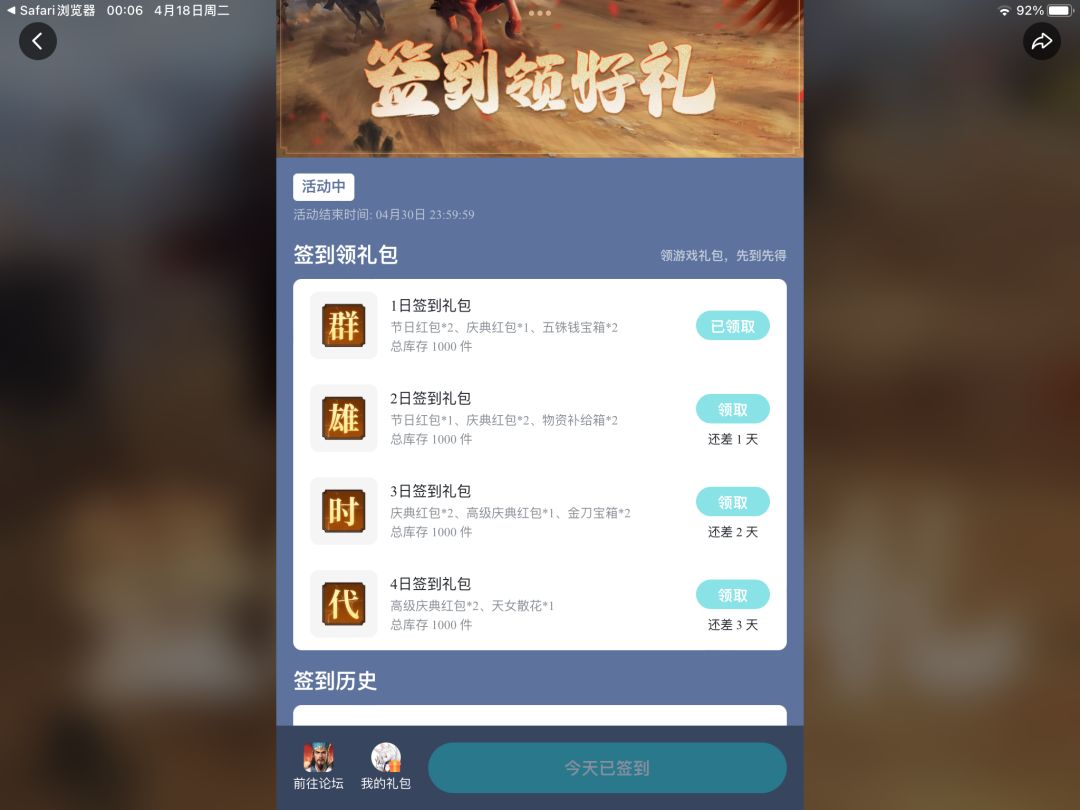 签到活动已经开始了,兑换码已经有了,但是没有兑换礼品的窗口。