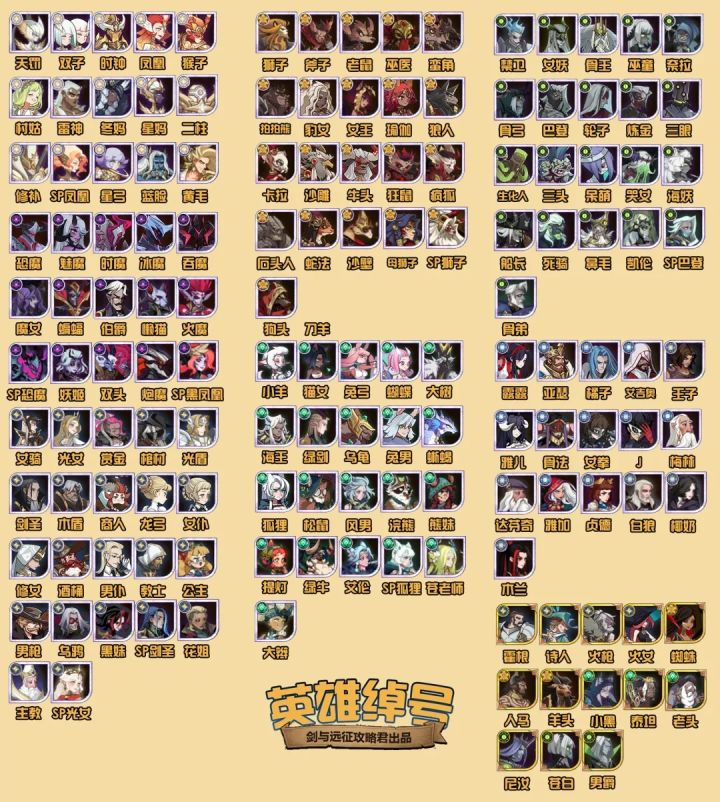 很多刚入坑的新手不知道英雄的绰号,看攻略的时候也是一脸懵,转发个最新版的绰号图给萌新们看看(转自剑与远征攻略君)