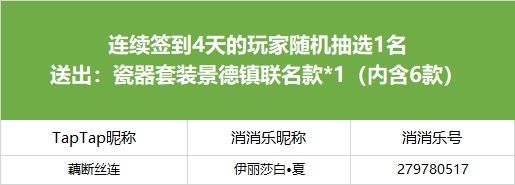 【瓷旧迎新福运连连!连签打卡奖励不断!】活动现已开奖!恭喜获奖的各位小村民!本次活动道具奖励将在7个工作日内通过游戏进行发放,感谢您的支持与理解,之后也请多多支持消消乐(づ ̄3 ̄)づ╭❤