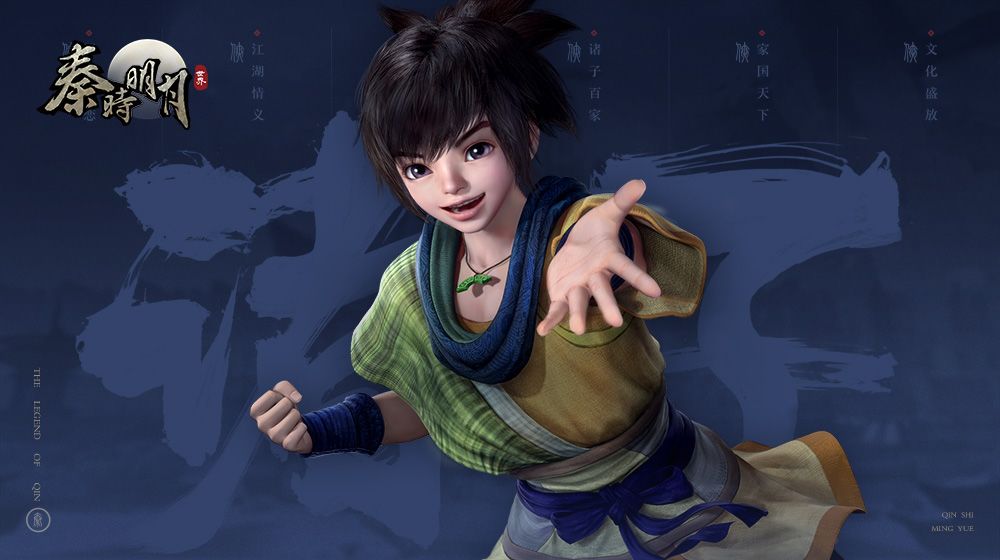 因此我们在角色设计的时候不仅需要在外貌形象上去还原动画的设计,在气质和形态动作上也要贯彻整个角色的特点。我们在游戏中给天明设计制作表情和动作时,考虑到纵使经历重重,但他毕竟只有12岁,属于孩子的天性仍然是存在的。所以加入了诸如做鬼脸、烤山鸡、使坏等内容,让少侠们见到天明就像见到自己的弟弟一样亲切。同时在外貌和气质上力求统一,再通过台词和剧情情节的设计,让天明这个人物在秦时明月游戏中更为鲜活。
