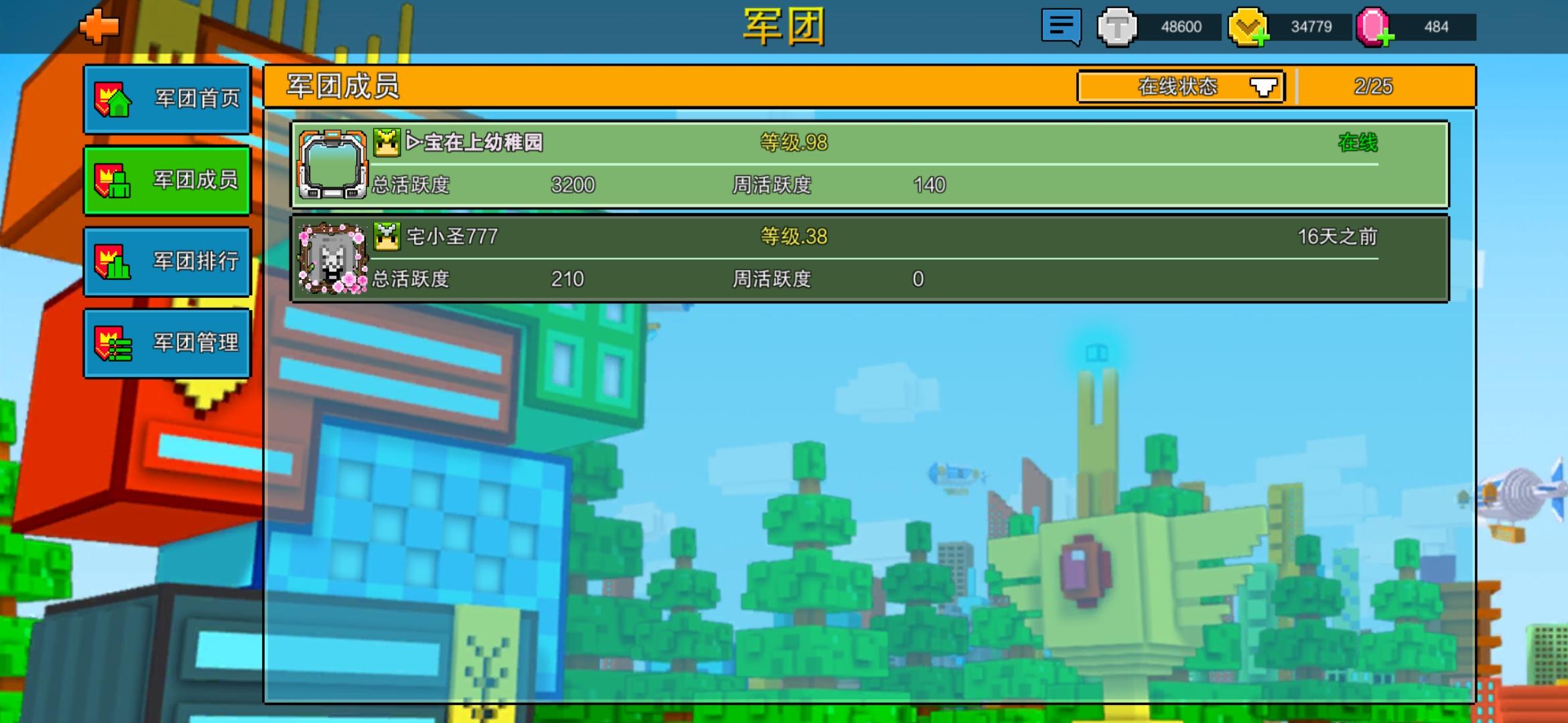 我们不难发现,这是个只有两个人的二级军团,活跃度并不高,军团的团长也是十分卑微的在军团宣言上默默求人。