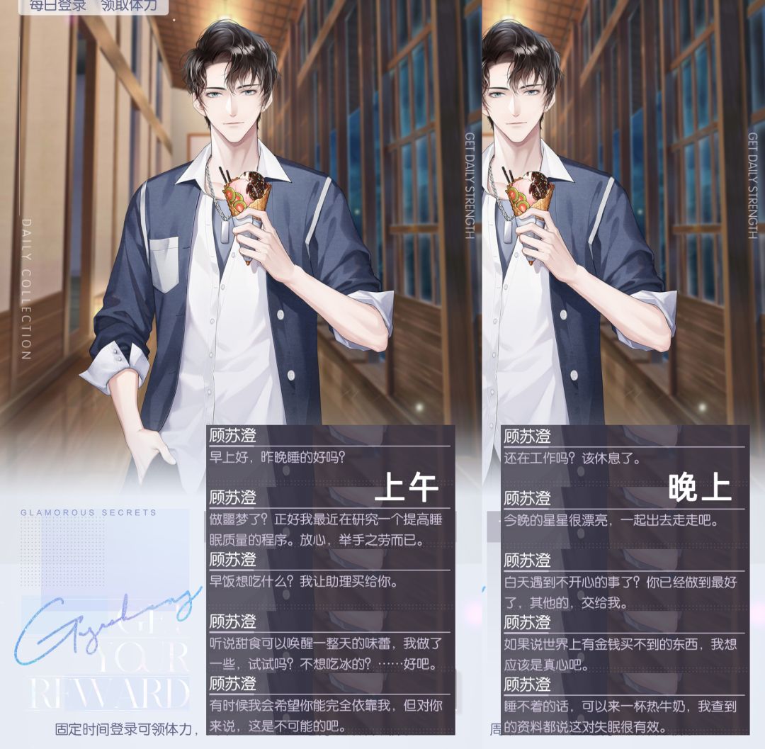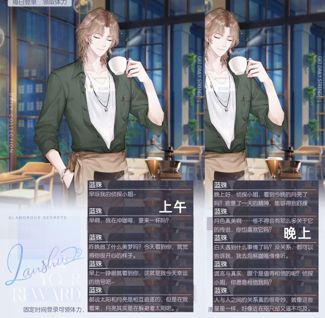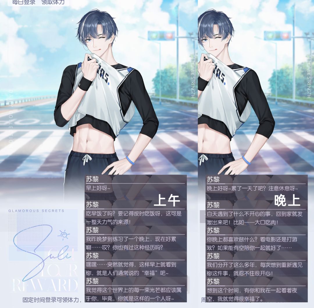 P3-7为NPC【每日体力·问候语】:时纪、苏黎、蓝殊、落言、顾苏澄。