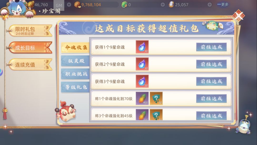 4. 新增成长目标,冒险福利一路相伴,角色升级、驭灵殿通关、命魂培养、参与职业挑战等活动满足条件即可领取海量珍稀奖励,更有折扣礼包等你。