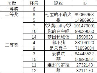 以下为本次活动中奖者名单,还请店长大人查阅自己是否中奖!