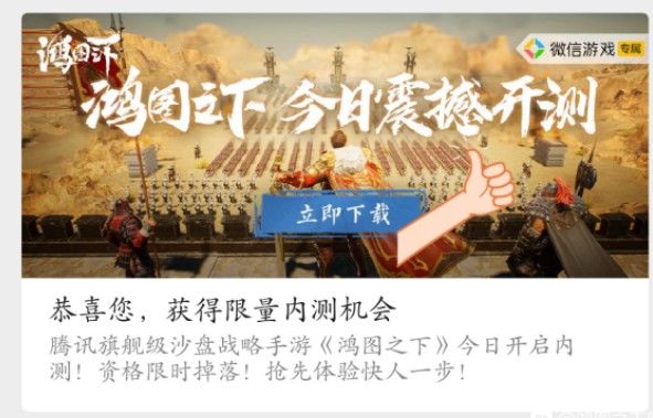 第一次内测结束以后还以为二次要好久,没想到这次能在7月底就玩到鸿图二测啦。这次内测我是在微信游戏推送收到的,限量内测测试,感觉超幸运!