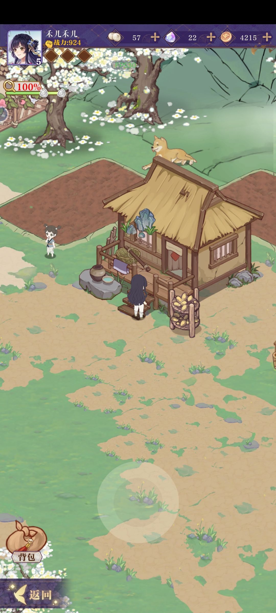 真心喜欢游戏氛围,总体来说是个挺上头的休闲种田游戏。美术值得夸夸,从服饰道具和主场景能看出考据和用心,唯一不足的是副本地图可能因为开发时间短未完善有些捡漏,后面详说。音乐也挺好,整体氛围都很符合古风种田的氛围。初见那个小清新的庭院和主角团真的眼前一亮。
