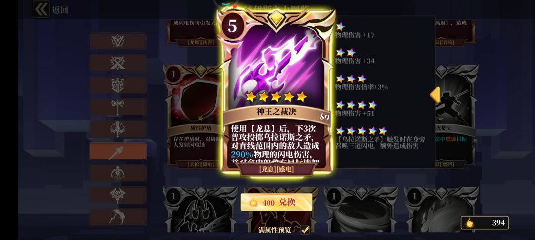 雷种的被动可以给神王提供高额的闪电伤害加成,所以还有一张紫卡需要去赌就是雷种时间延续的卡