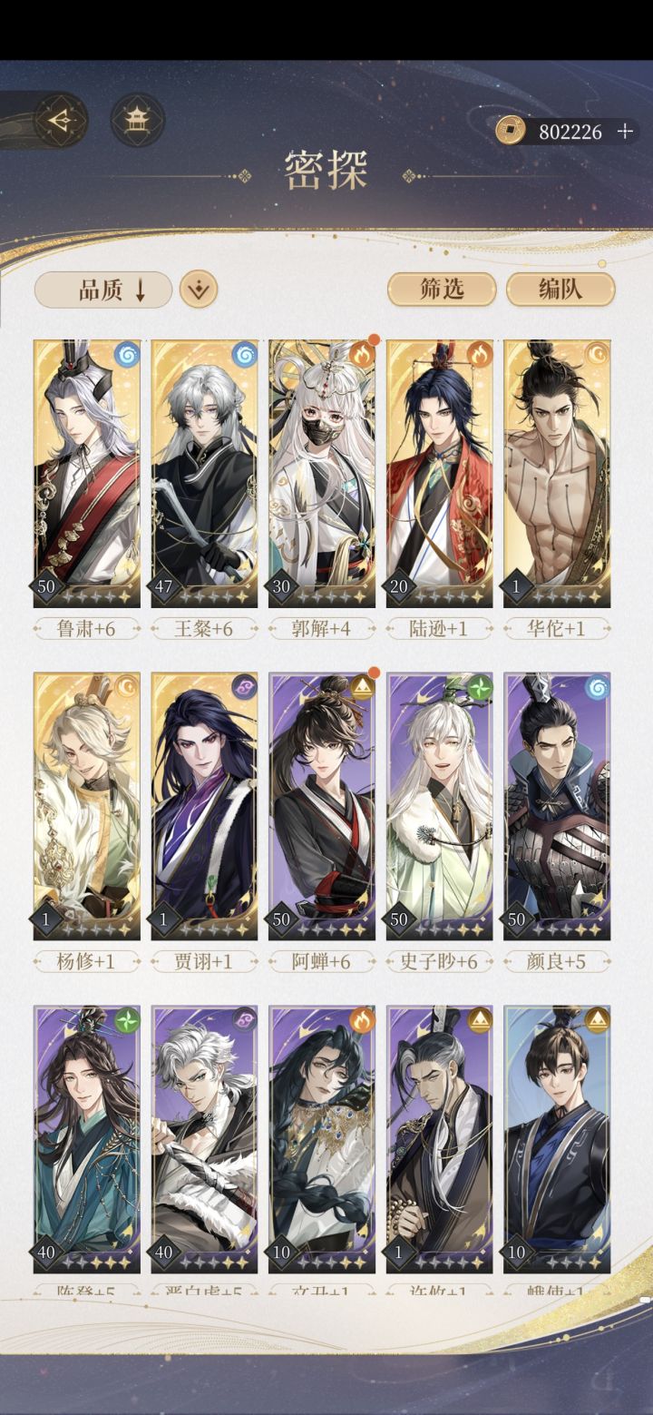 王粲(队长,命盘能量消耗减一),鲁肃(命盘初始能量+1),盾,杨修,史子渺(阿蝉)