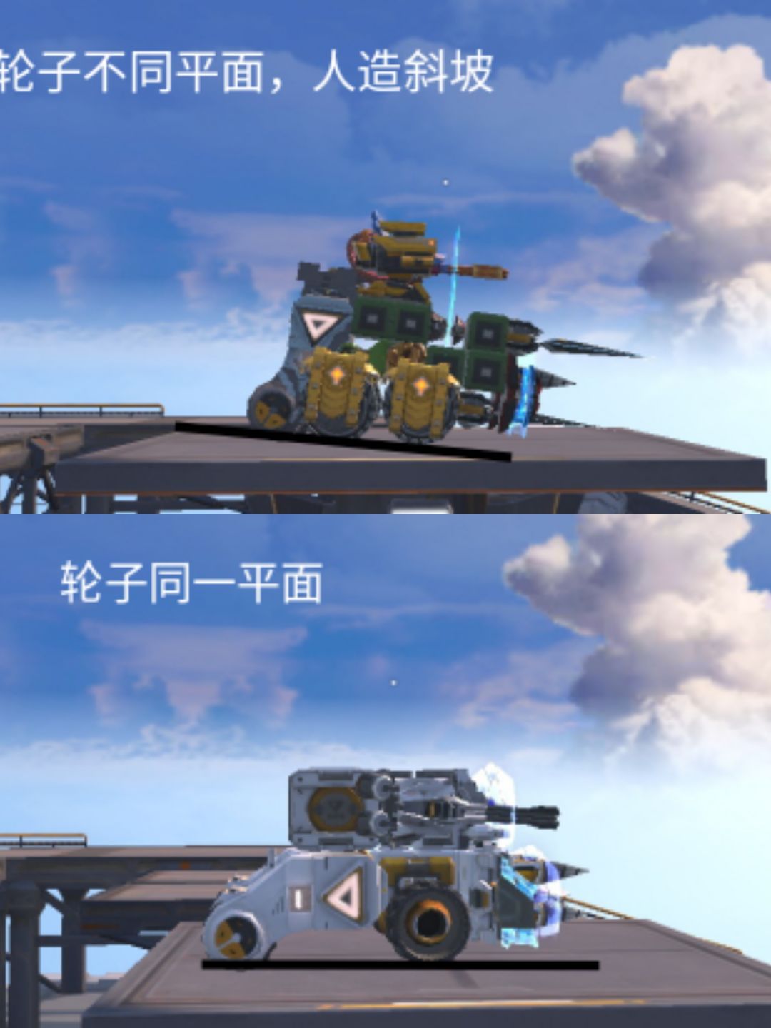 想必车子在下坡的时候走的更快,这个常识没有人不知道吧?重装上阵也是如此,而二代只在后面摆放一个天马人,斜坡的成型度反而比一代更高,再配合上六个高速轮,速度更快!