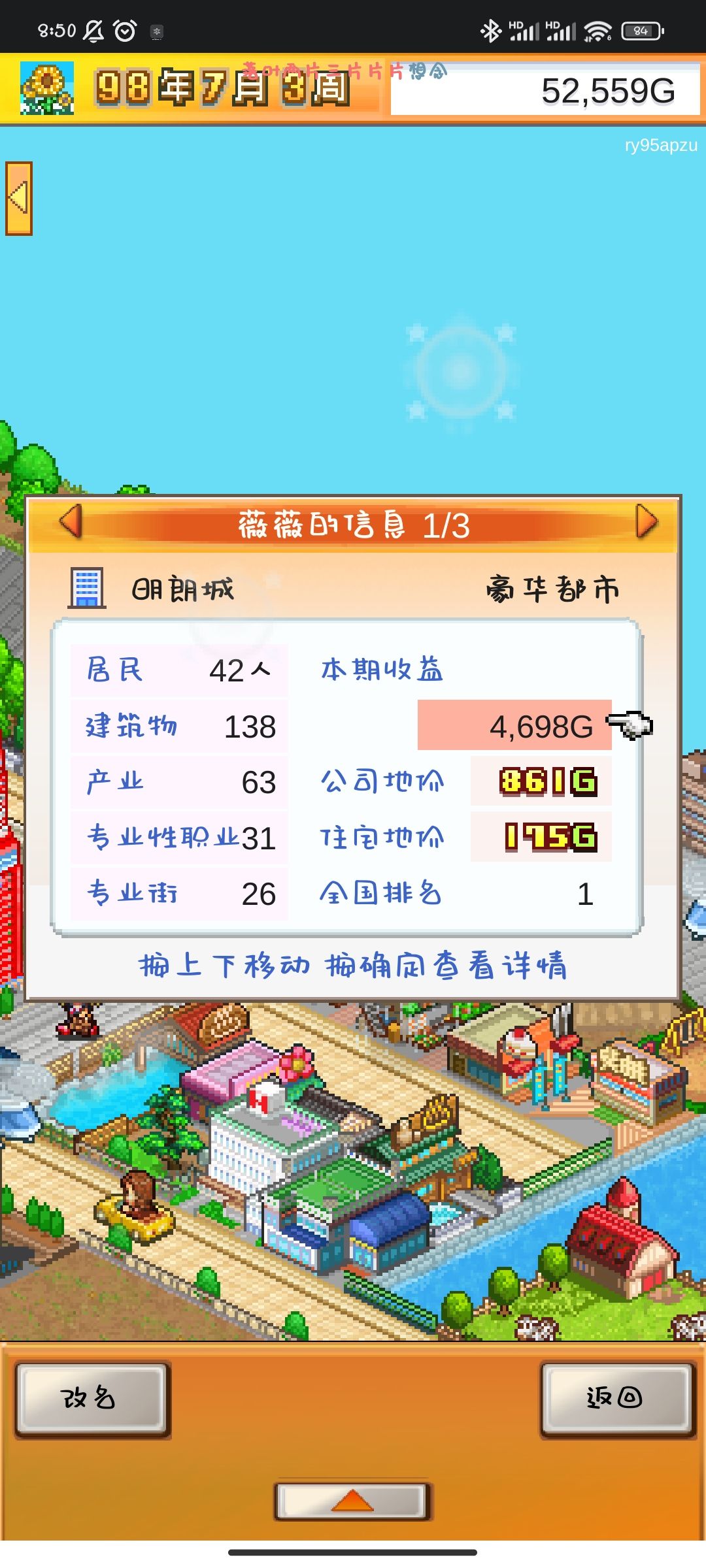 前期一定要攒钱 然后卖点数 (别问我为什么这样 因为我前期一直狂开发建筑物导致一直亏 )后期所有比较大型的设施出来 又或者是专业街越来越多就能持平 我现在基本就是养老了 偶尔给小人转职移动小人的住宅