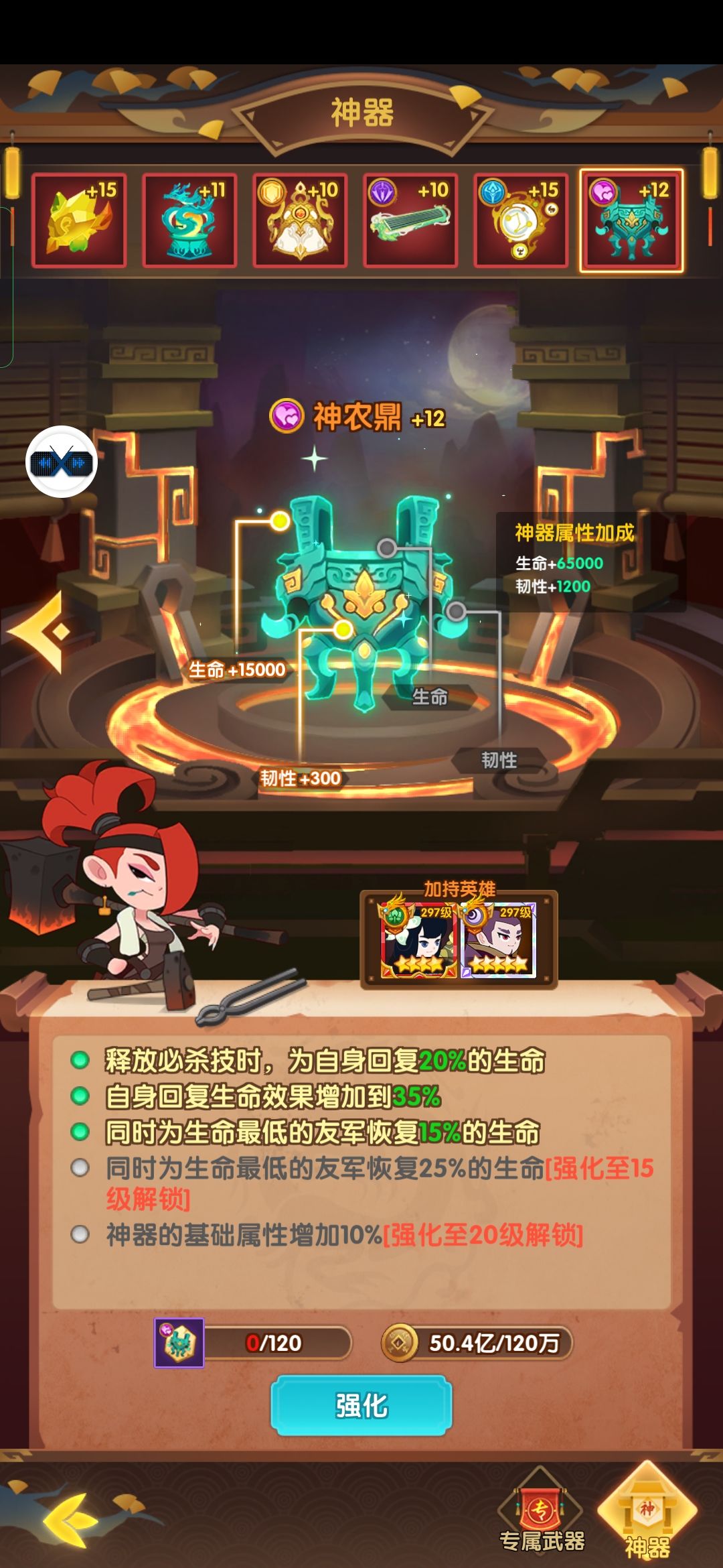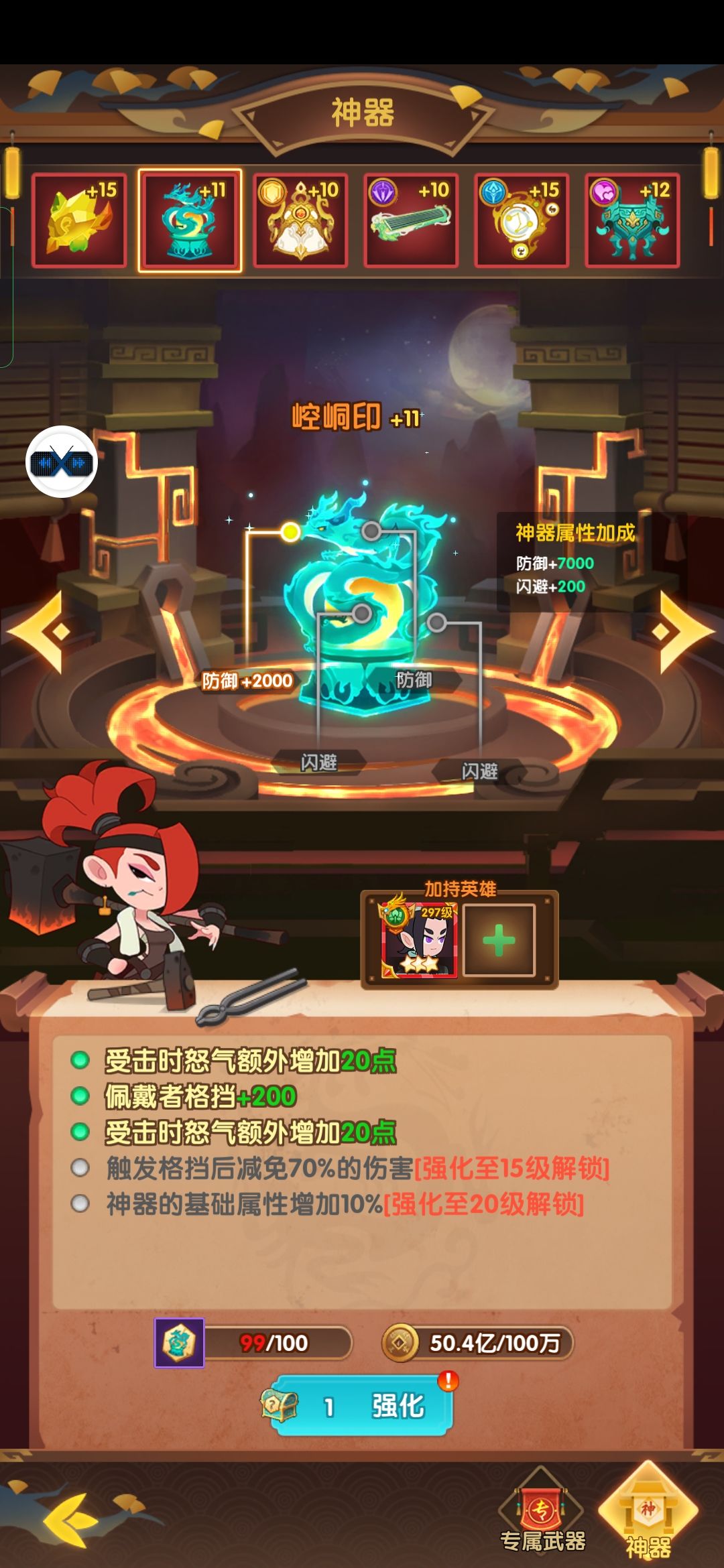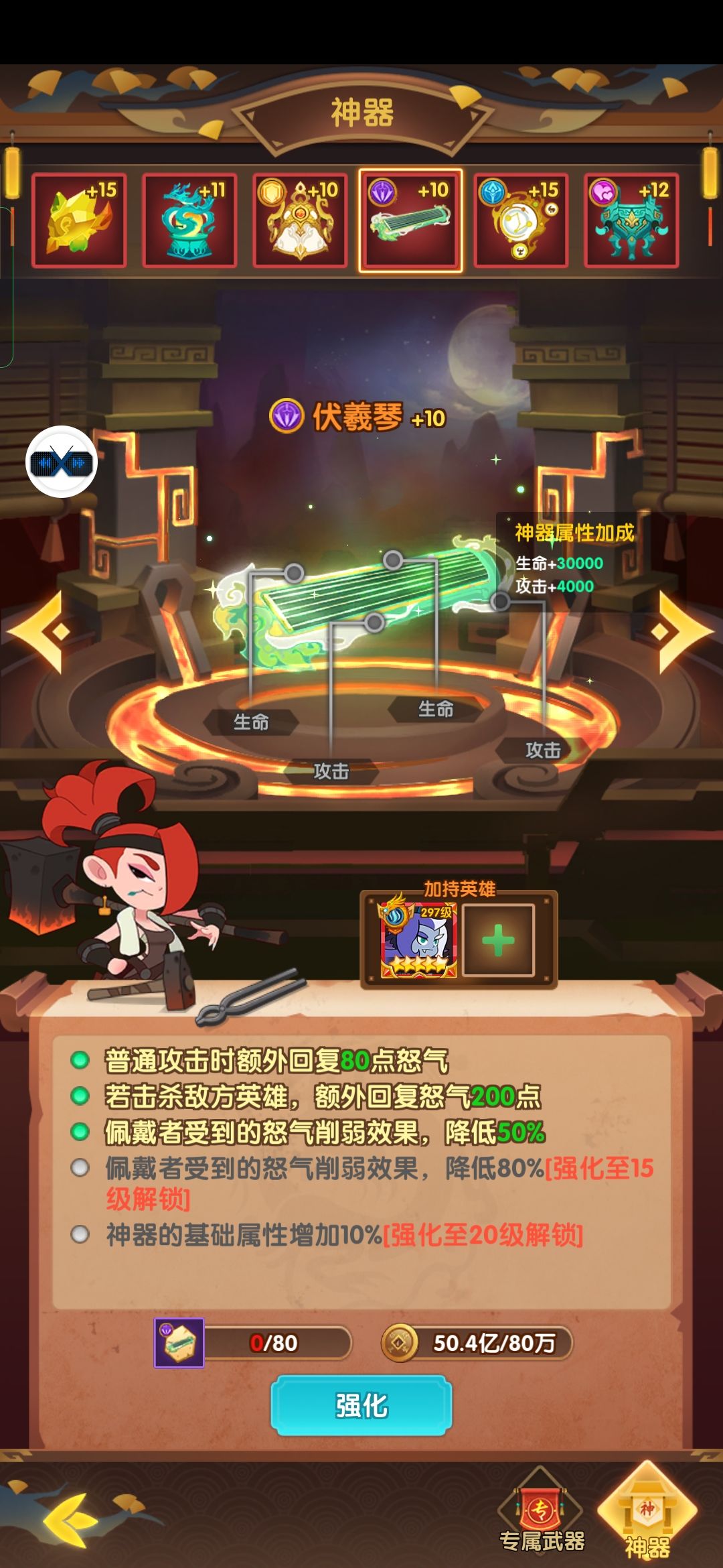 茶壶:开局全体增加怒气,英雄增加爆伤,暴击,回复怒气,适合虎子,太乙,雷子等技能群,单伤害较高的英雄。